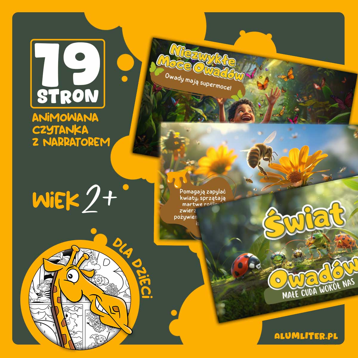 Świat Owadów to spokojna, ciepła czytanka dla dzieci w wieku przedszkolnym, która w prosty i przyjazny sposób pokazuje najmłodszym fascynujący świat owadów.
