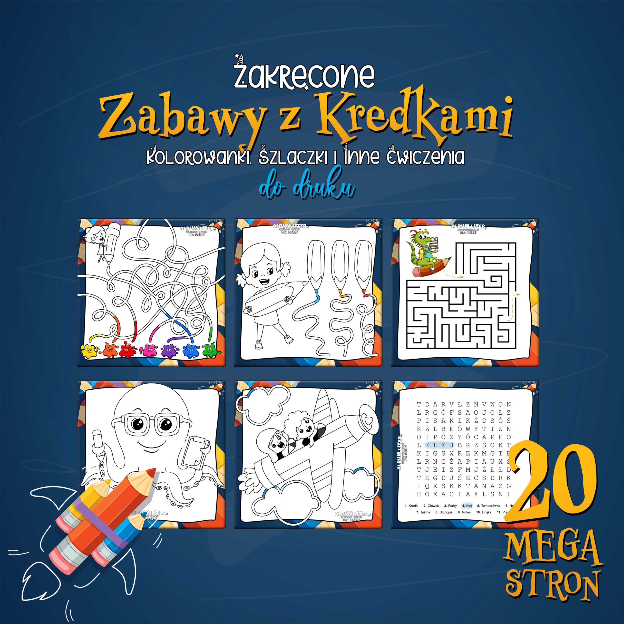 Zakręcone Zabawy z Kredkami – Kolorowanki, Szlaczki i Inne Ćwiczenia do Druku (20 unikatowych stron)
