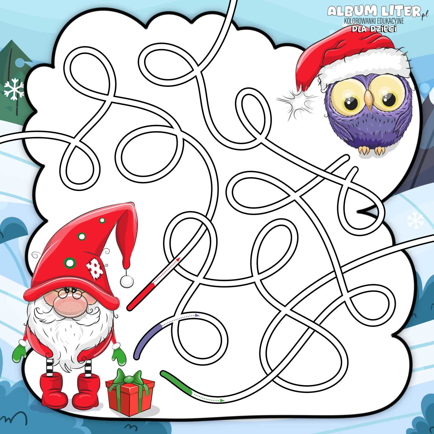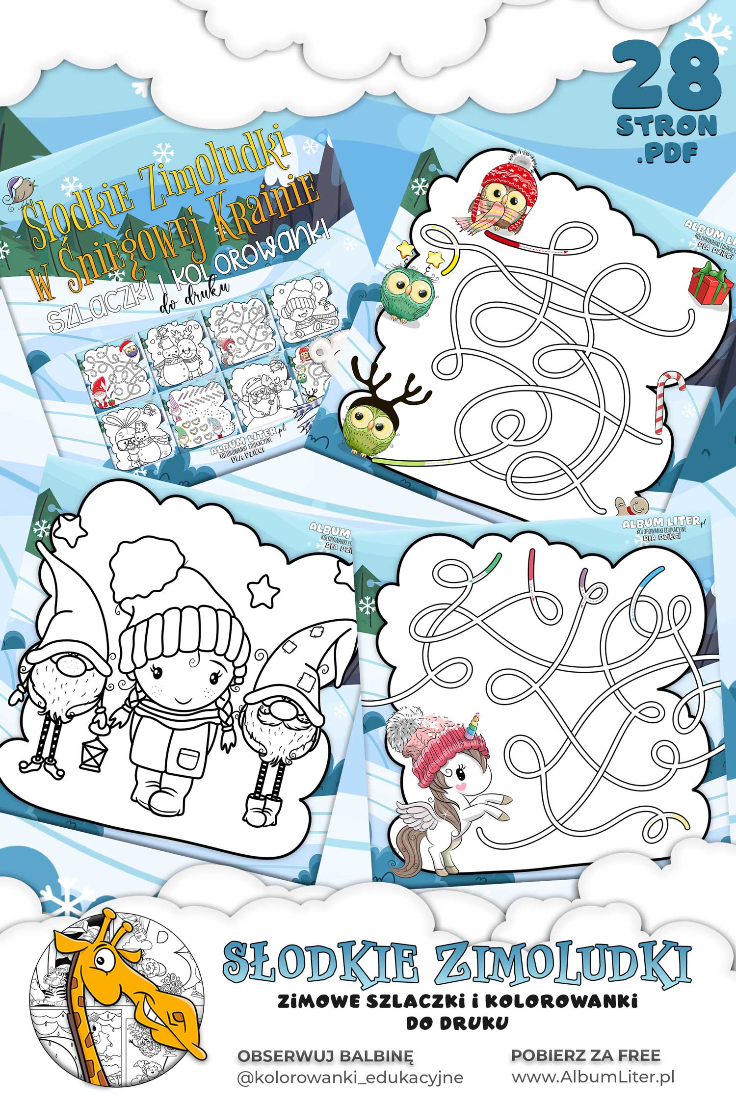 Słodkie Zimoludki w Śniegowej Krainie Szlaczki i Kolorowanki do Druku