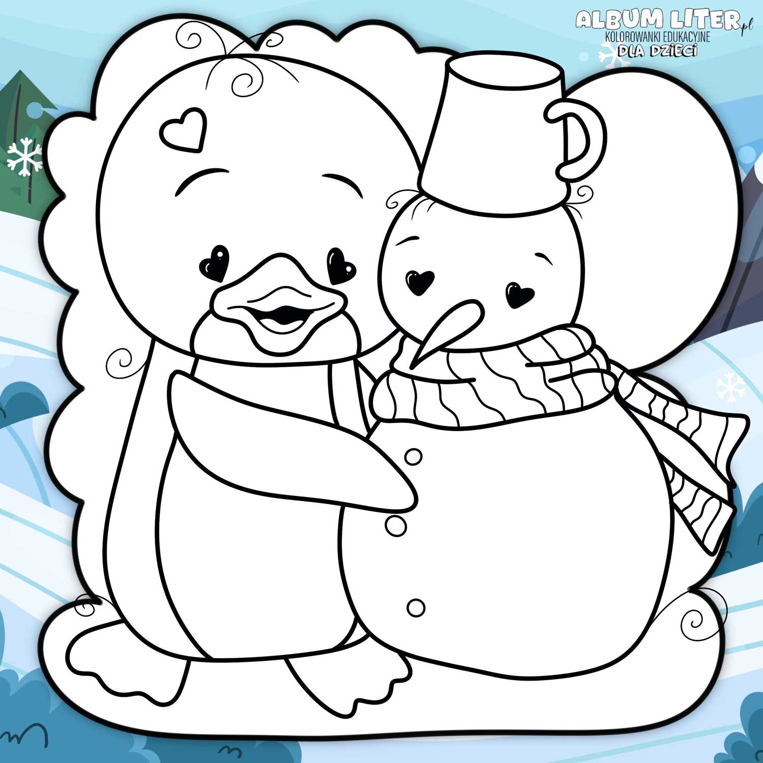 Zimowa Kolorowanka do Druku. Pingwinek i Jego Kolega Bałwanek