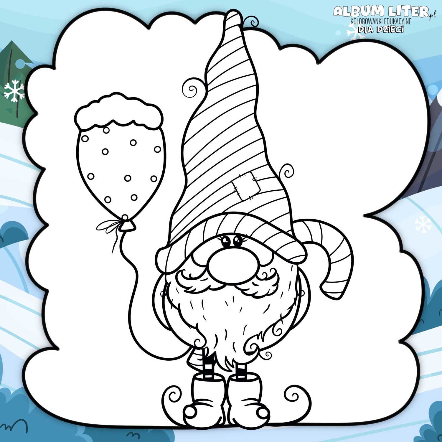 Zimowy Skrzat z Balonikiem w Śniegu - Fajna Kolorowanka do Druku